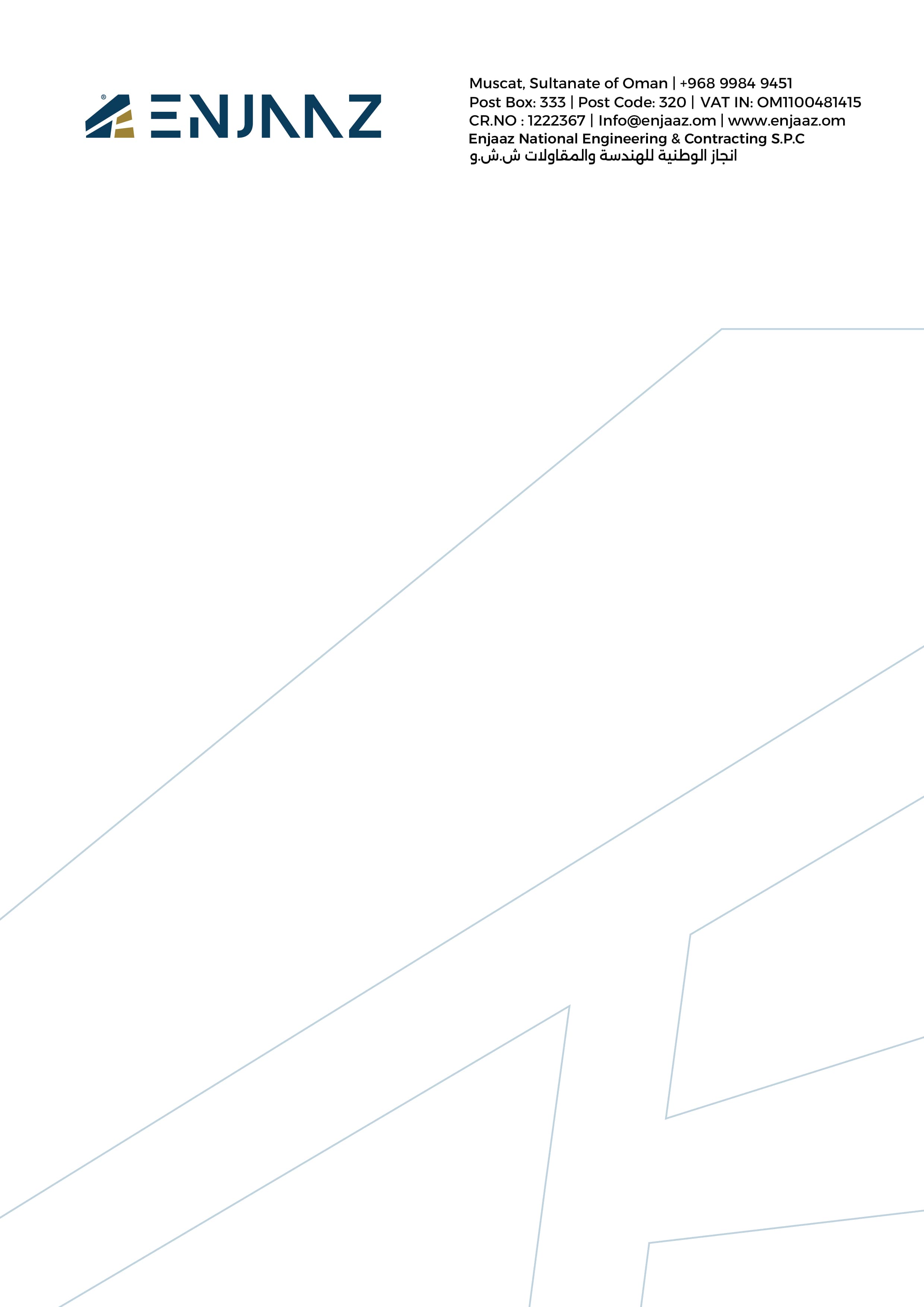 إنجاز الوطنية للهندسة والمقاولات هي مؤسسة مرخصة ومعتمدة بالكامل تعمل بأعلى معايير الامتثال وضمان الجودة في سلطنة عُمان.